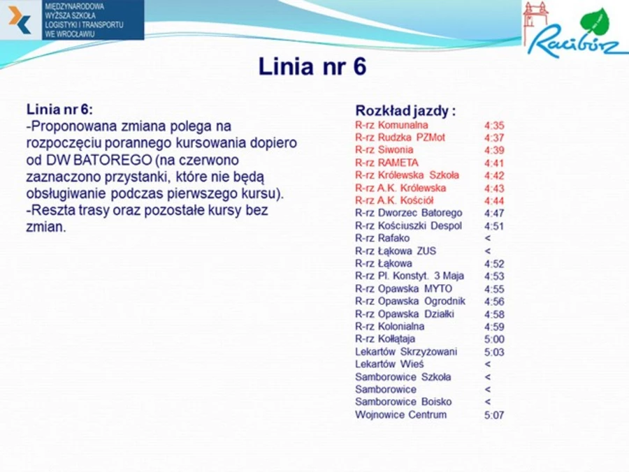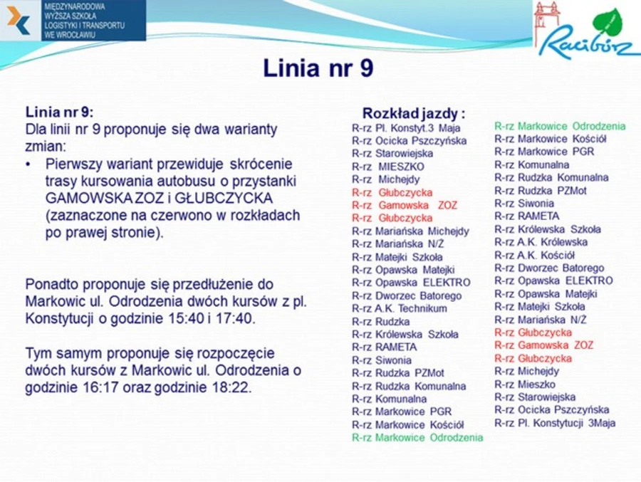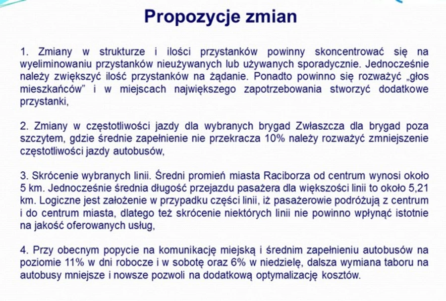 Propozycja zmian w rozkładzie jazdy miejskich autobusów